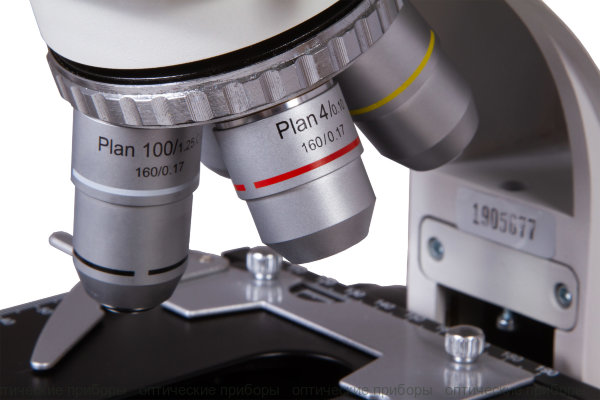 MED-25 - планахроматические объективы, револьверное устройство на 4 объектива, масляный конденсатор темного поля, мягкая галогенная подсветка мощностью 20 Вт, возможность настройки освещения по Келеру.